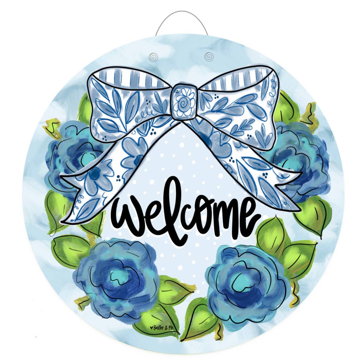 Baxter & Me - Blue Willow Bow Welcome Door Hanger