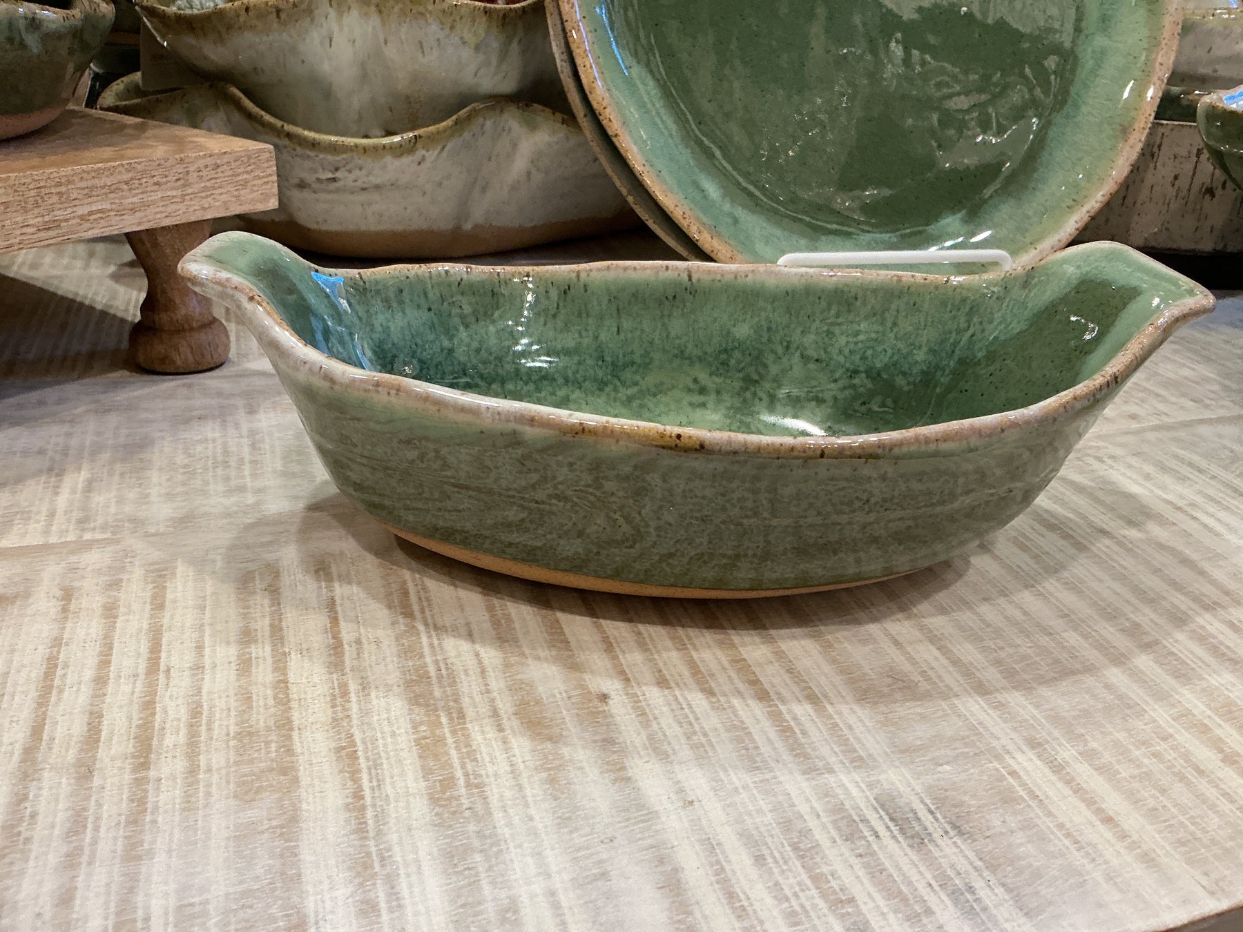 The Oval Souffle - Matcha Latte pottery piece combines elegant design with subtle artistry, capturing the serene essence of traditional matcha culture. Its smooth oval form and refined glaze create a sophisticated vessel perfect for enjoying your favorite matcha latte or as a distinctive decorative accent. Crafted to enhance both your tea experience and aesthetic surroundings, this pottery exudes timeless charm and quiet luxury.