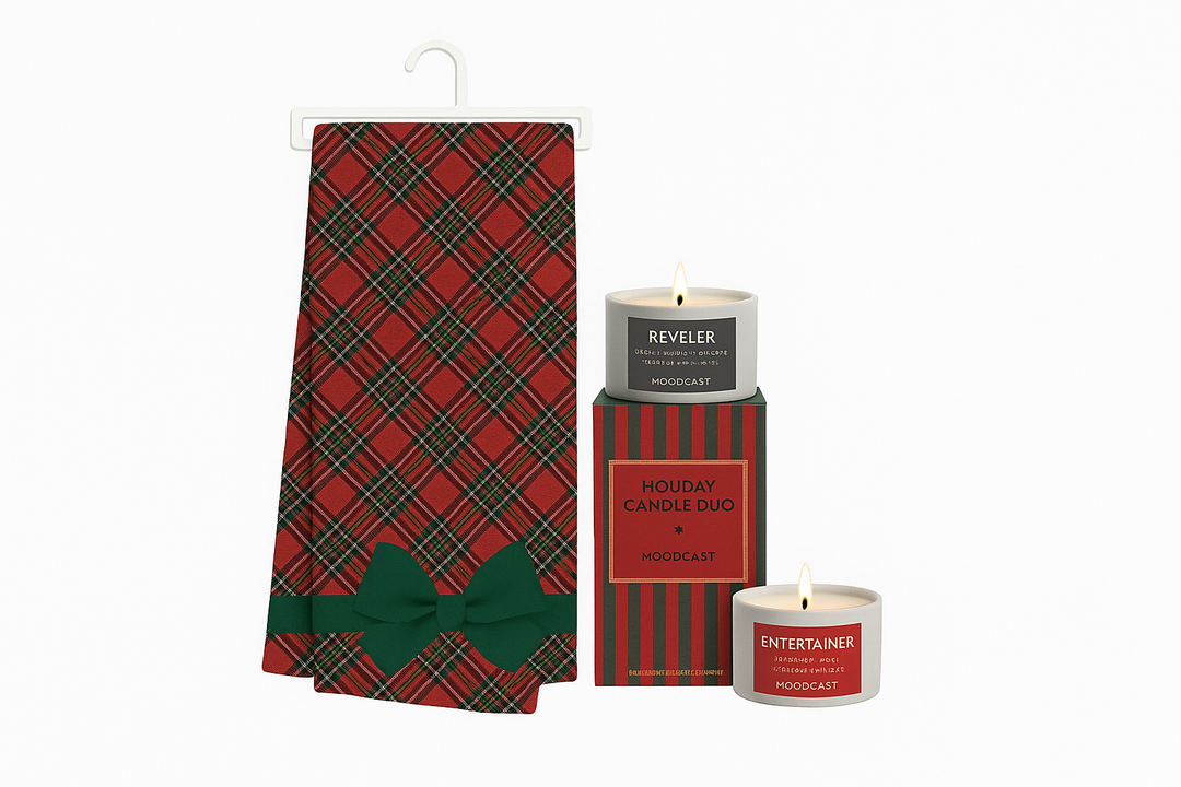 Holiday Hostess Gift Set – Tartan Towel + Moodcast Candle Duo