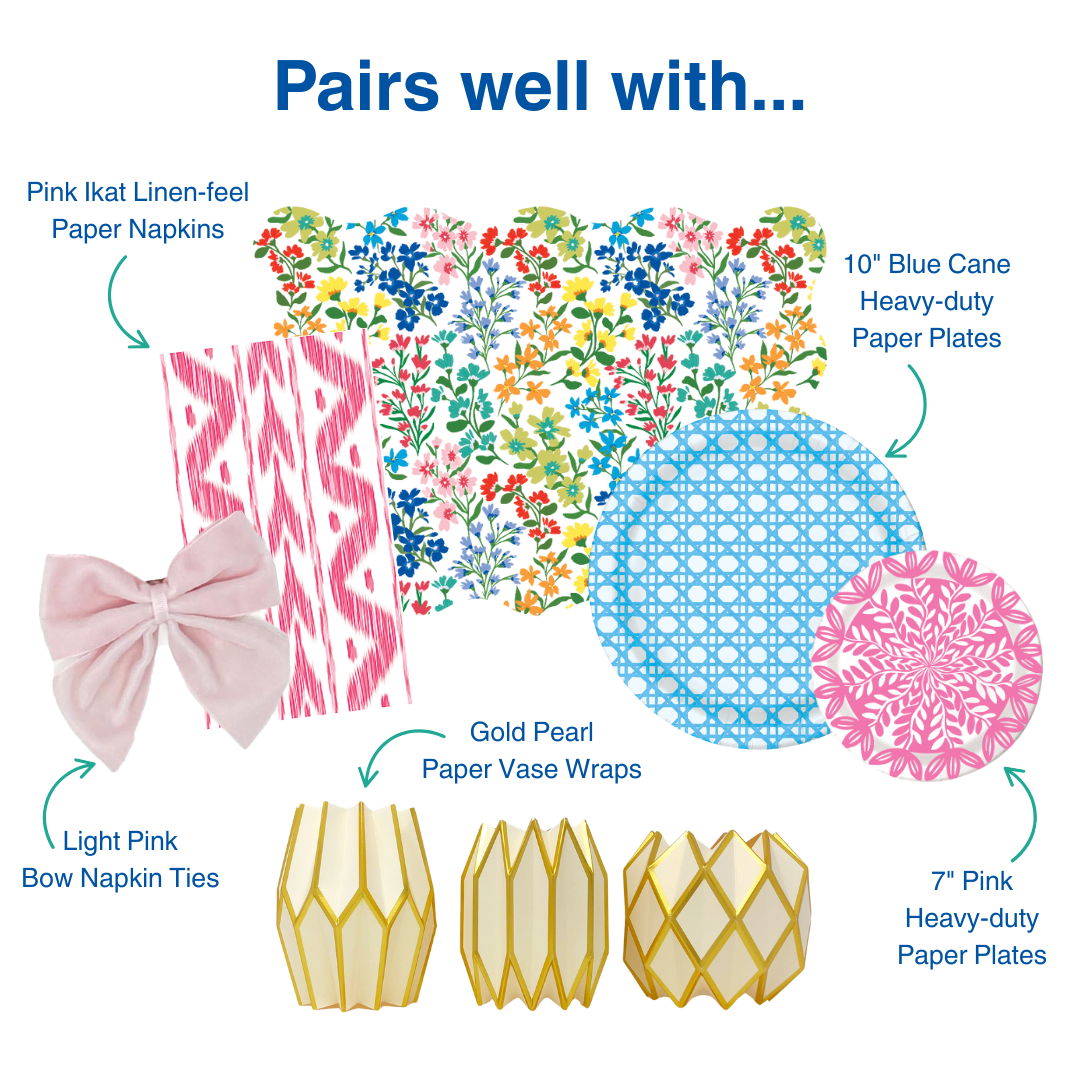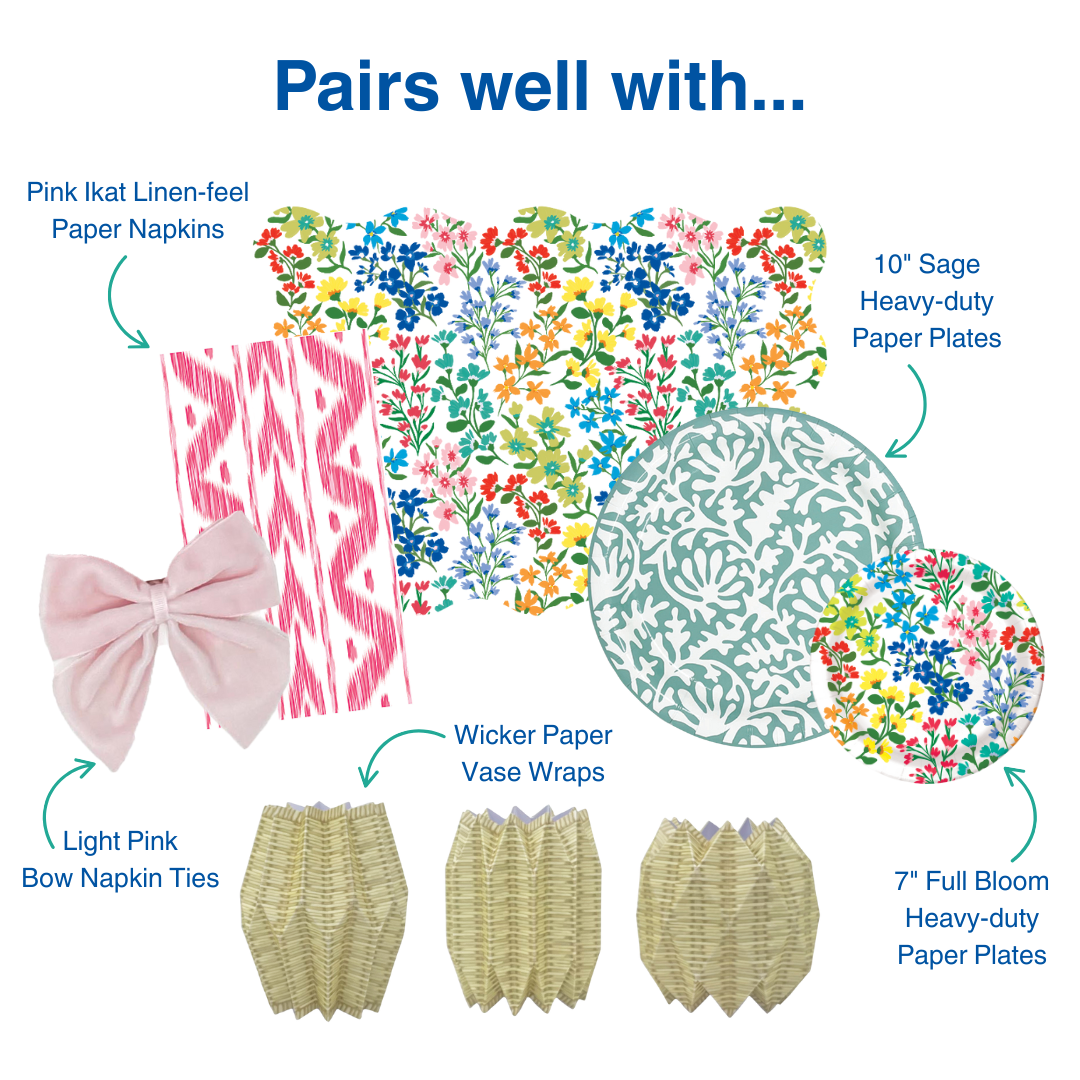 Lucy Grymes Designs presents the Full Bloom Scalloped Rectangle Paper Placemats. This set of 24 is a stress-free solution to setting a beautiful table. Each pattern is hand-painted by Lucy and printed on sturdy, premium paper, making these placemats both visually appealing and durable. Ideal for effortless entertaining, our products offer simple, fun, and fuss-free tablescaping. Perfect for gift shops, home decor stores, and stationery boutiques, these placemats are known for their high sell-through rate and easy giftability. Enjoy the moment with our fuss-free paper goods.