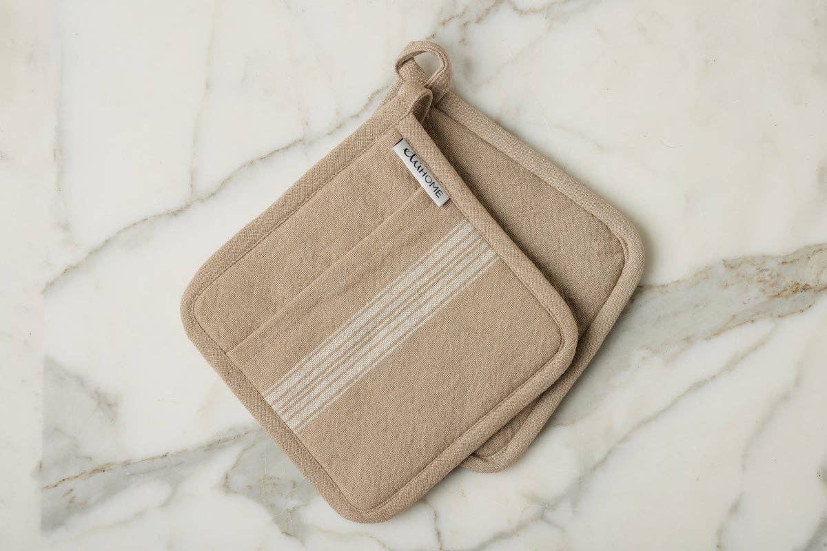 A seamless fusion of heritage and modernity, the French Bistro Collection is designed for those with a discerning eye for both style and substance. Crafted from 100% premium cotton, this pot holder set is luxuriously soft yet durable for everyday use. The signature striped motif—an homage to traditional Provençal textiles—lends a refined yet understated vibrancy, elevating any kitchen or tablescape with a touch of je ne sais quoi. * This set of 2 matching pot holders comes tied with luxe white branded ribbon and a kraft hangtag for seamless merchandising.