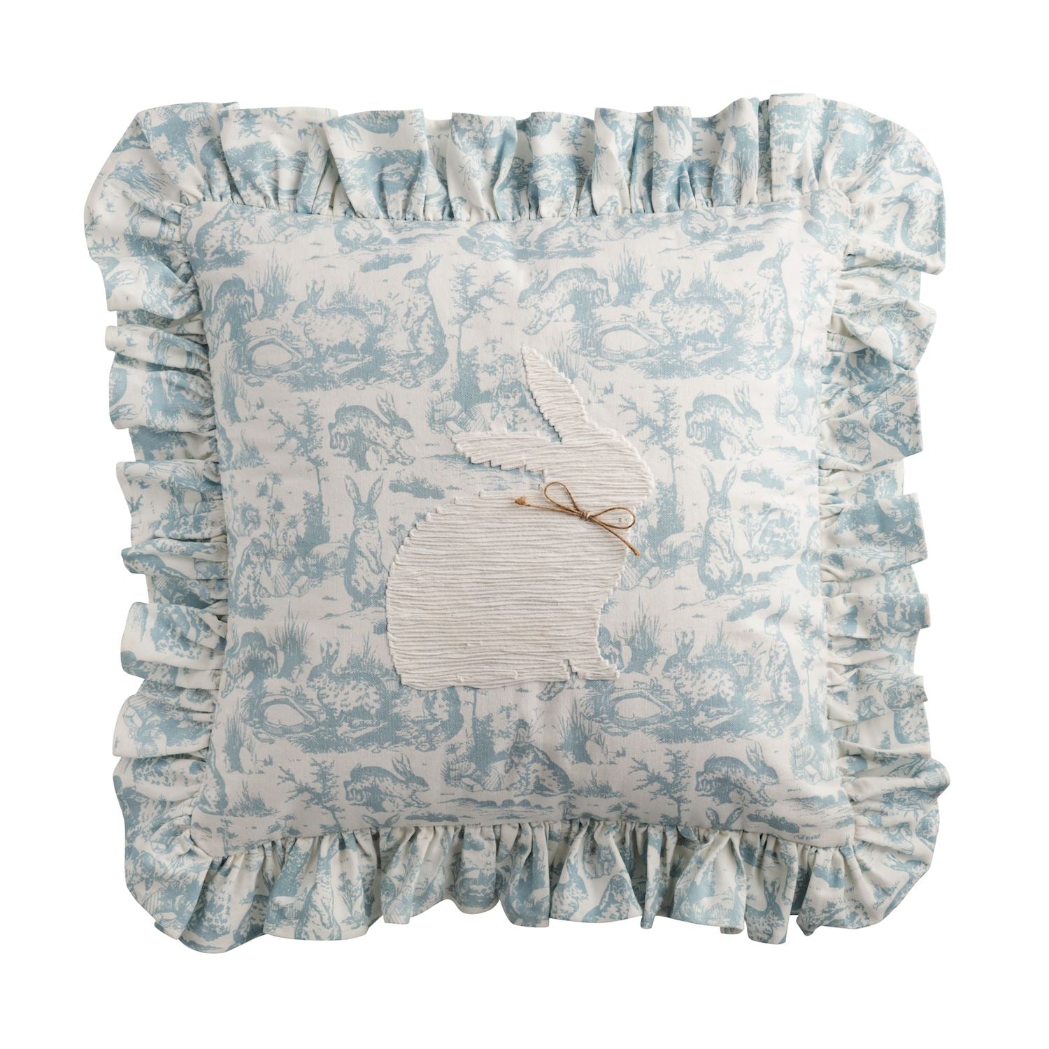 Embroidered cotton pillow features ruffle flange and canvas backing. Zipper closure.